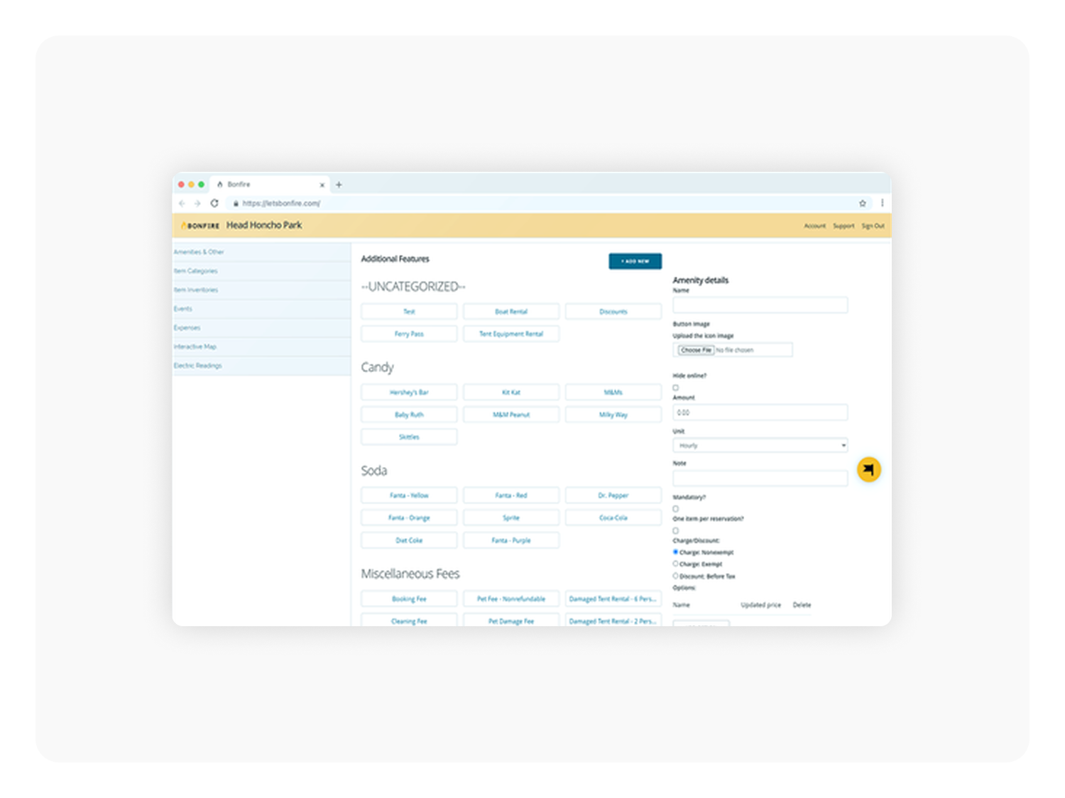 Create additional revenue and happier campers by allowing guests to add amenities (firewood, propane tanks, boat rentals, etc.) to their reservations ahead of their stay.